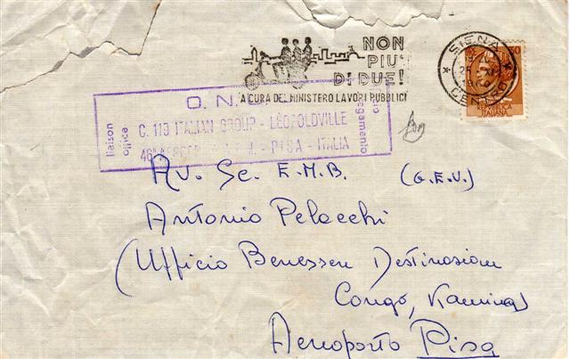 BUSTA SPEDITA DA SIENA A MILITARE IN MISSIONE ANNULLO PARTENZA 25-11-1960.