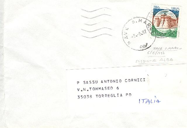 PARTENZA 06-06-1997, ANNULLATA LIVORNO 07-06-1997, ARRIVO 10-06-1997